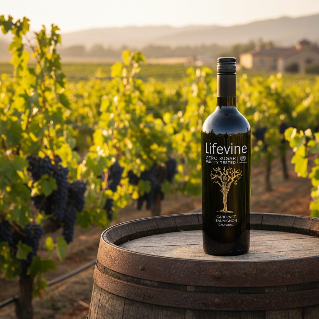 Lifevine Cabernet Sauvignon begins in the sun-drenched vineyards where optimal ripeness meets meticulous care. We believe exceptional wine comes from exceptional grapes, grown with integrity. Our commitment to Zero Sugar and purity-testing ensures that every rich, full-bodied sip reflects the true character of the grape, free from unnecessary intervention.